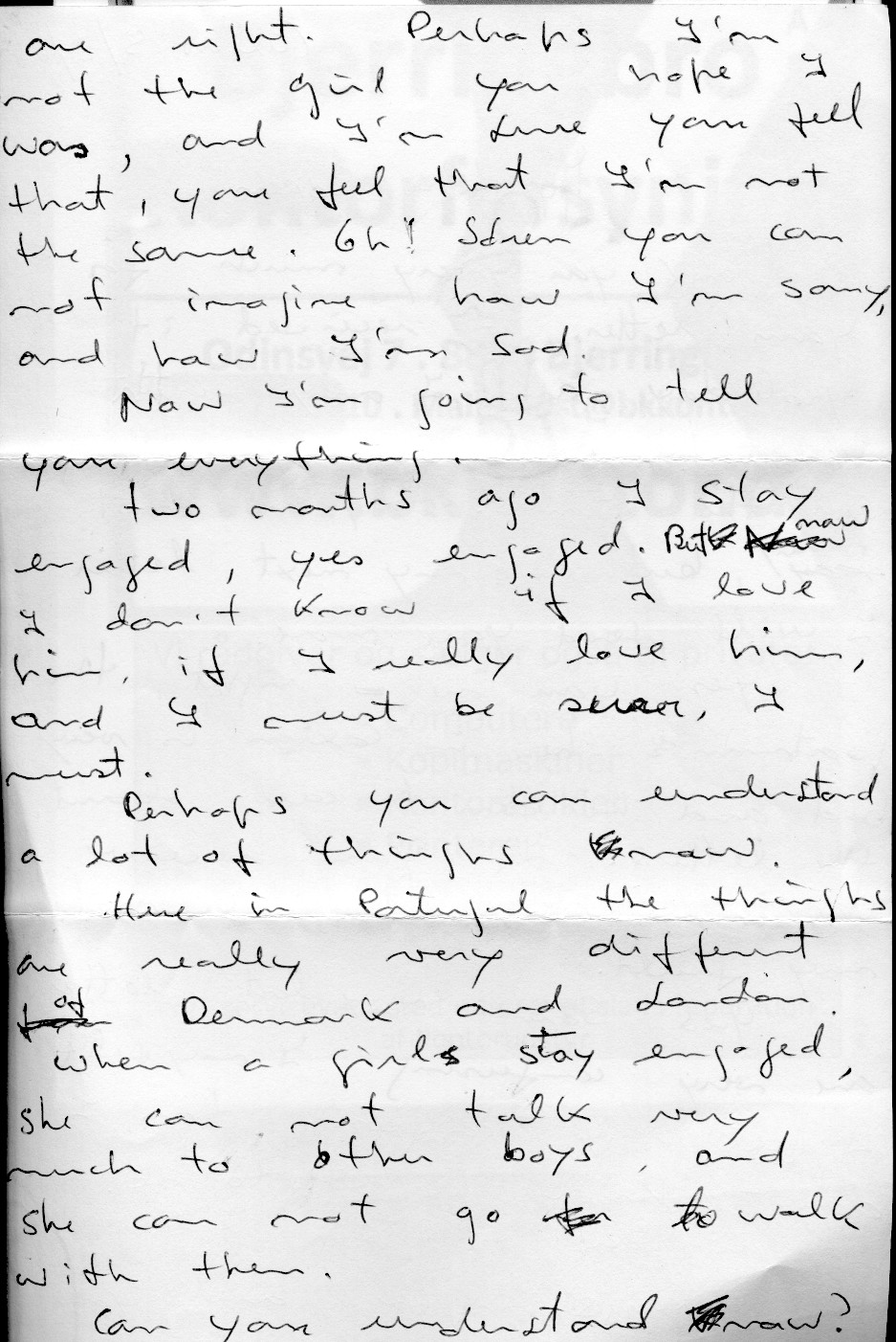 Efter hjemkomsten til Danmark, har jeg svaret på hendes brev - og derefter modtaget dette (i min afskrift):