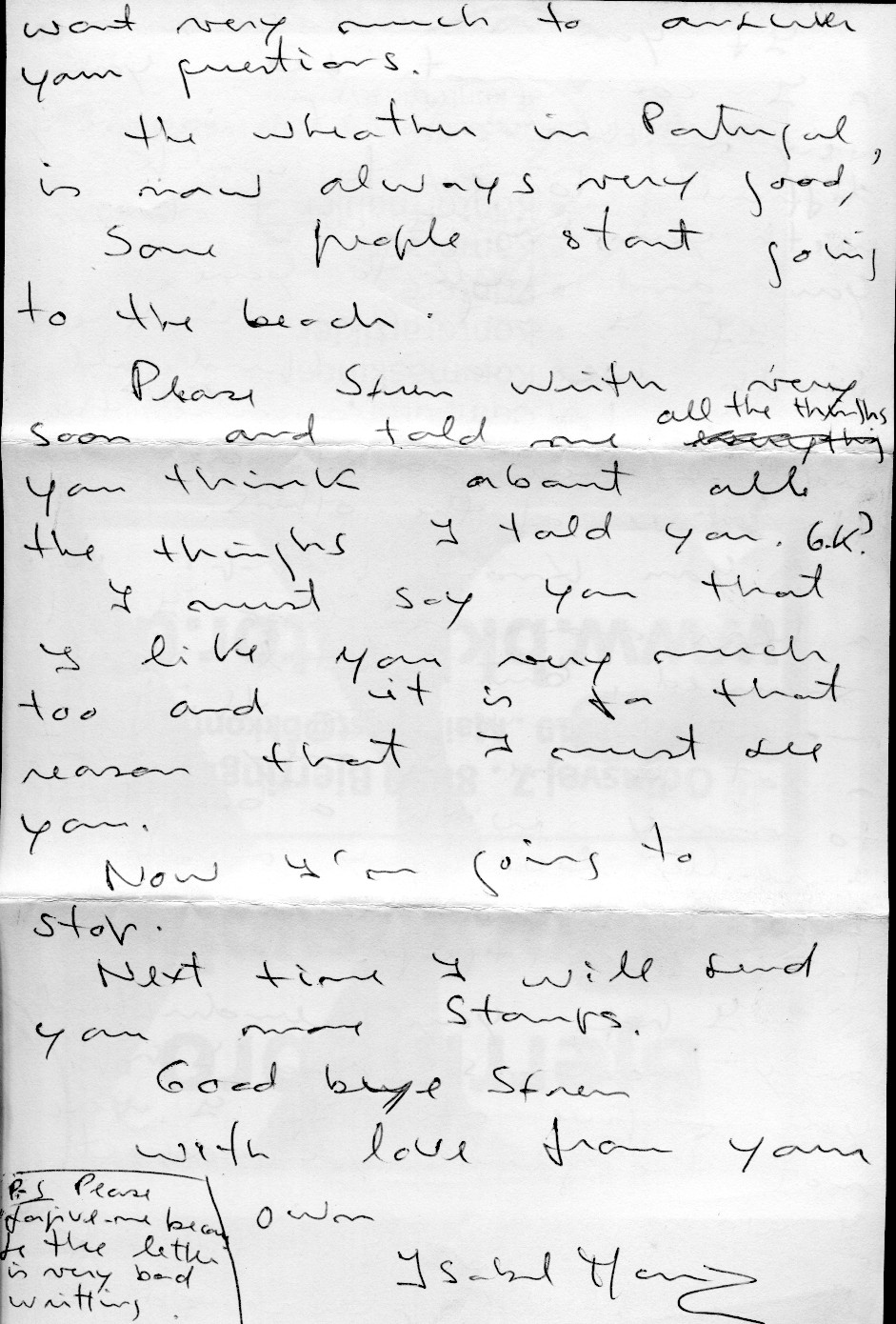 I min skoletid havde jeg en masse pennevenner - både i Danmark og i udlandet. Jeg startede med at skrive sammen med Isabel Maria i Portugal omkring 1962. Det var en interessant brevveksling, som endte med, at vi blev brev-kærester - og planlagde at mødes.