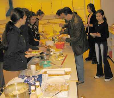 Det var aftalt, at hver familie medbragte deres egen mad. De mange forskellige retter blev så stillet frem på et 5 m langt tag-selv-bord, hvor der var alt fra burmesiske nudler med chilisovs, pakistanske risretter med lammekød, danske kalkunfrikadeller og til pastasalat med tunfisk.